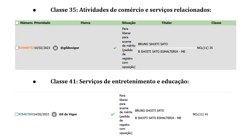 E o Gil do Vigor e sua equipe? Tiveram a mesma rapidez ao efetuar o pedido de registro de marca, para garantir a exclusividade do nome?